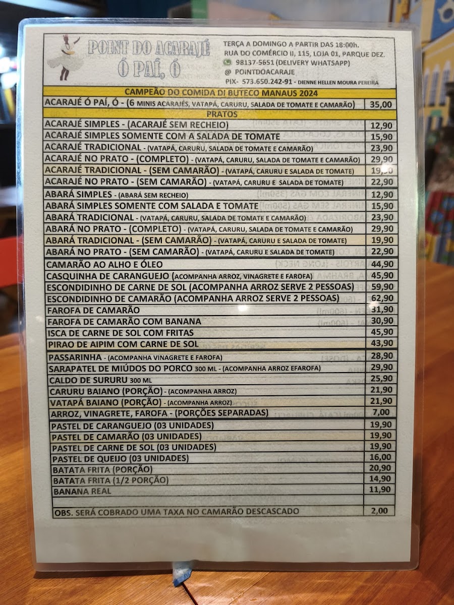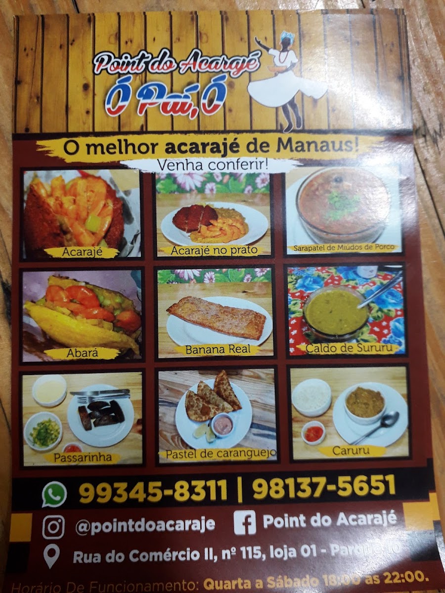 Welcome to Point do Acarajé Ó Paí,Ó, an inviting restaurant located in the vibrant Parque Dez de Novembro area of Manaus. Known for its authentic Bahian cuisine, this eatery specializes in acarajé, a traditional Afro-Brazilian street food that showcases the rich cultural flavors of Bahia.